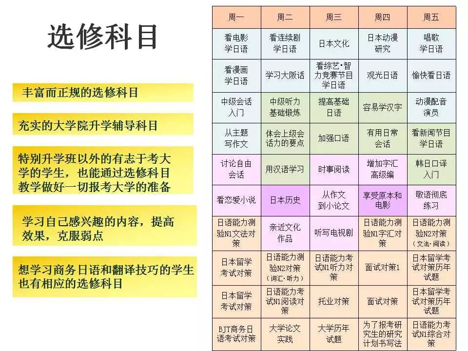 2.学校课程介绍(特别升学班、选修科目、商务日语班)